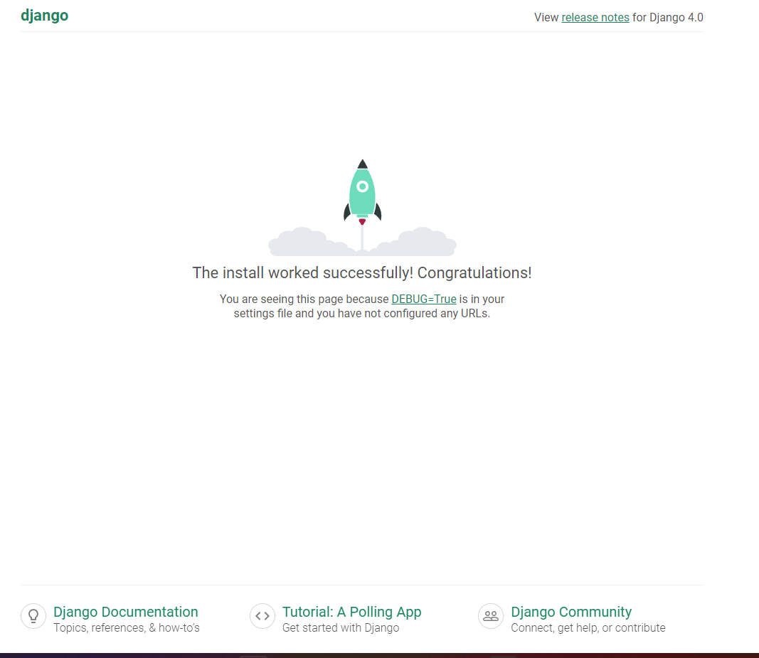 나는 파이선 3.10 버전 장고는 최신버전인 4.0.2 버전으로 설치된 것 같다.