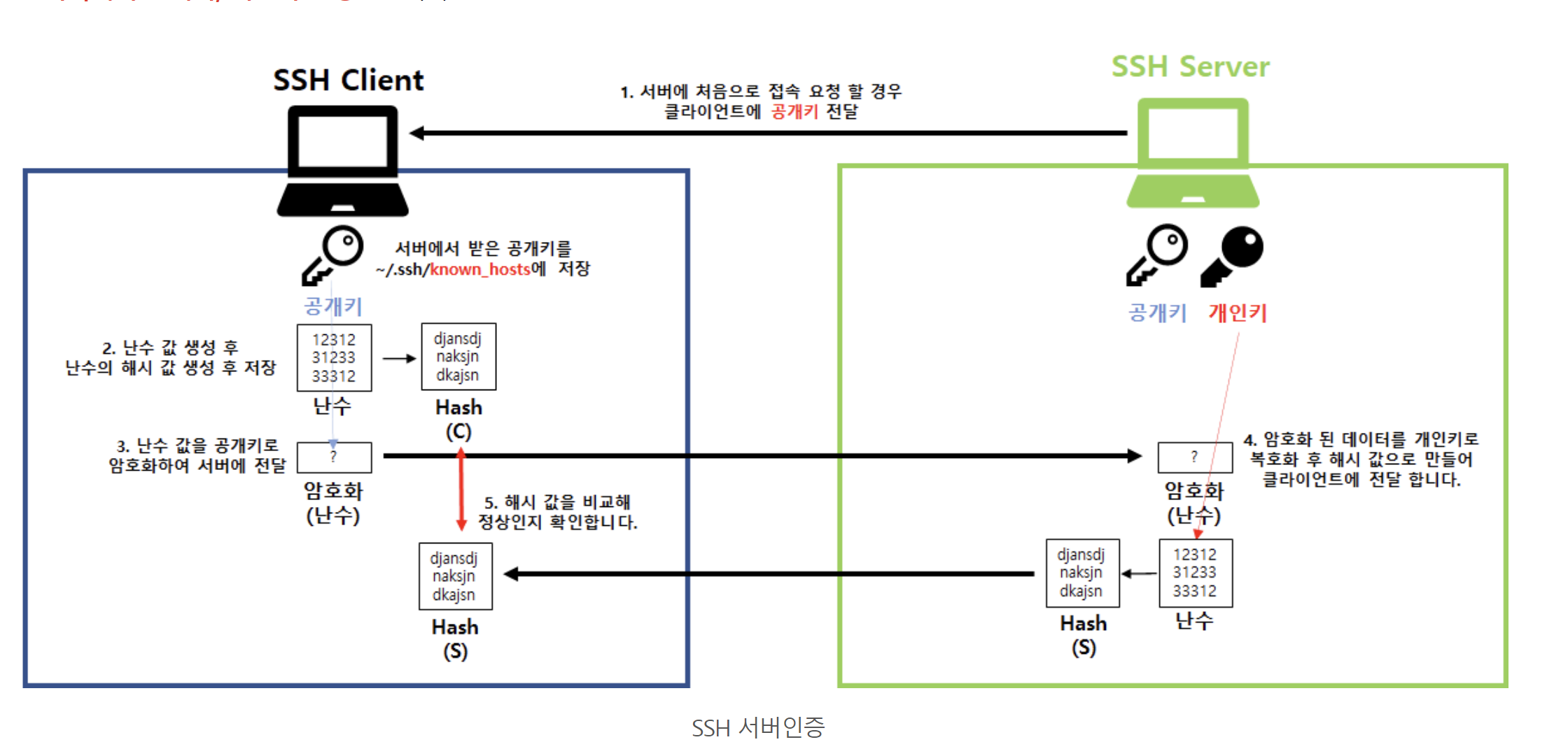 서버는 클라이언트의 응답을 자신의 authorized_keys 파일에 저장된 공개 키로 검증하여 인증합니다.