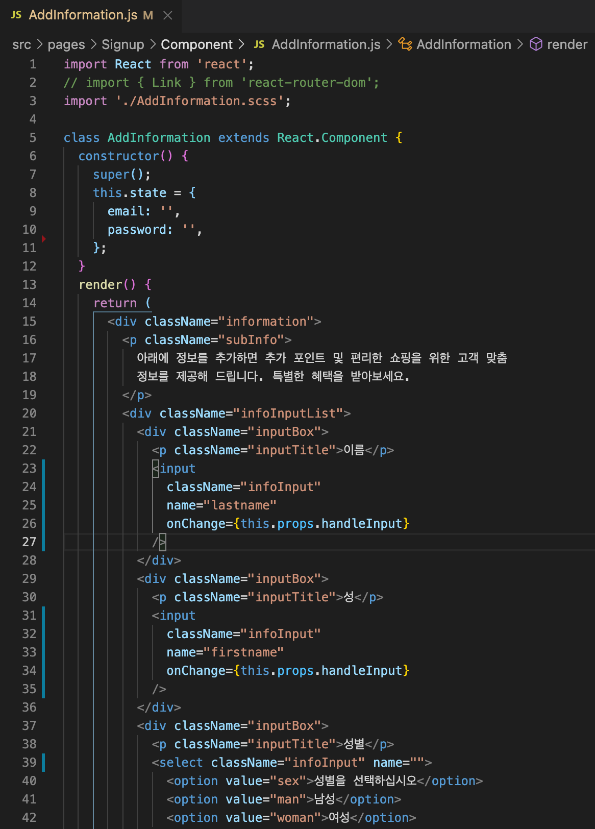 형광 밑줄은 isInfo가 true면 <AddInfomation/>
