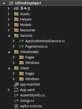 솔루션 탐색기에서 디렉토리 구조를 보면 MVVM 아키텍처가 적용된 것도 확인할 수 있다.