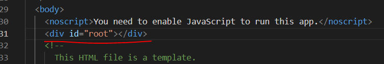 우리가 살펴봐야 할것은 index.html의 root id를 가진 div이다.