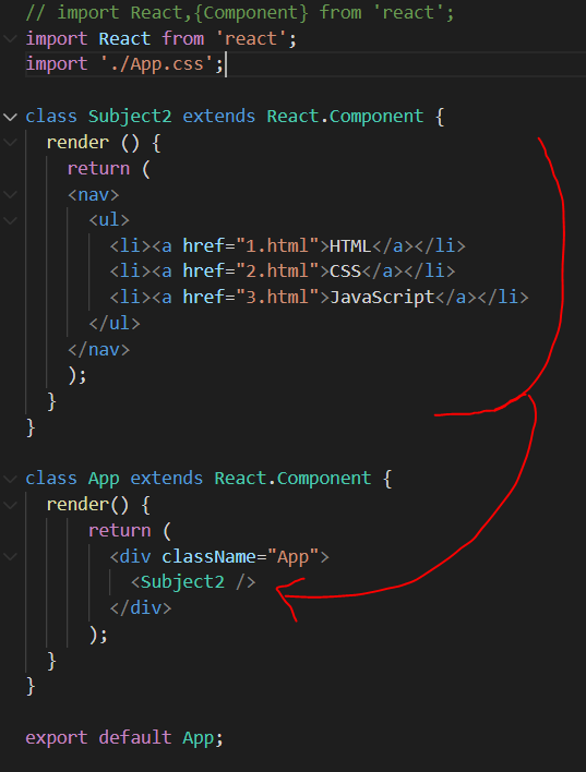 리액트 컴포넌트를 만들때는 위의 Subject2 양식을 지켜줘야 한다.
