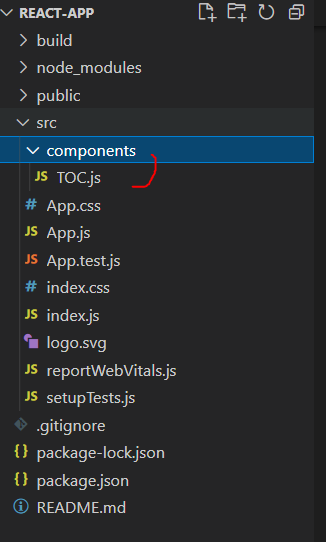 src 안에 컴포넌트라는 디렉토리를 만들고 TOC 라는 클래스 컴포넌트를 분리해보기 위해 TOC.js 파일을 만들어보자