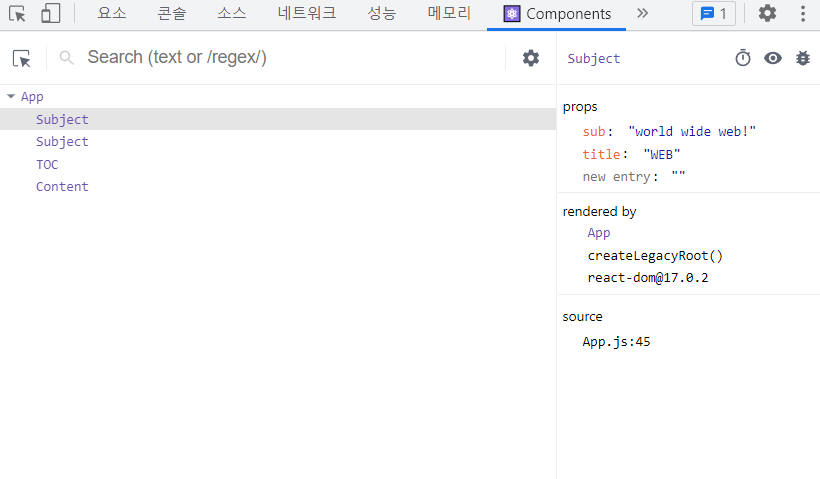 크롬 확장프로그램으로 React Developer Tools를 설치하면 리액트 툴을 사용할수 있다.