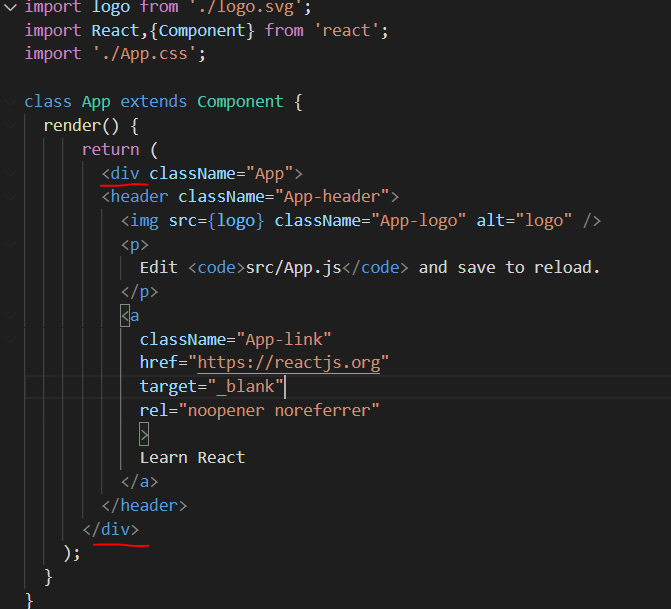 컴포넌트의 내용에는 반드시 최상단이 하나의 태그(div 등)로 묶여있어야 한다. 없애보면 에러가 뜨는걸 확인할수 있다.