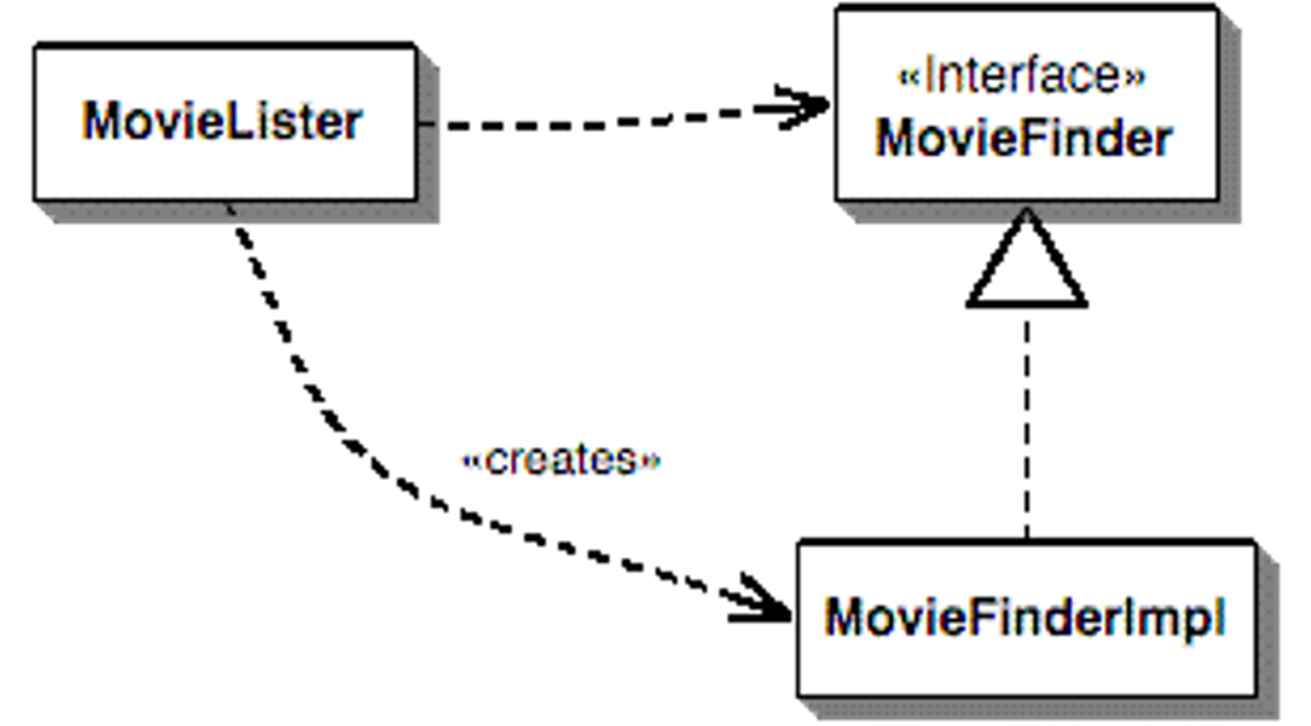 MovieLister 객체는 영화들이 어떻게 저장되어있는지 알 필요없이 독립적인 메소드가 되길 원한다. 즉, finder 객체와의 의존성을 없애고 싶은 것이다.