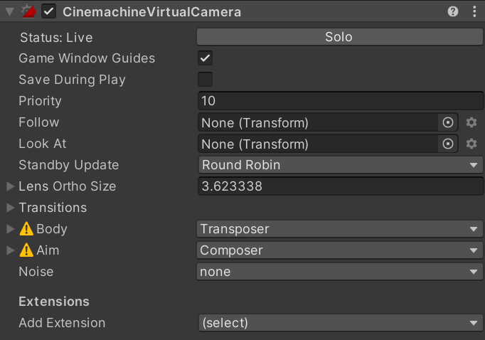 | Framing Transposer | 카메라가 대상이 일정한 화면 위치에 있도록 자동으로 따라감. 2D에 적합 | 2D 플랫포머, 횡스크롤 |