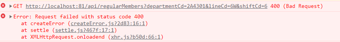 혹시나 해서 controller에 브레이크 포인트를 놓아도 들어오지 않기때문에 서버문제가 아닌 클라이언트 문제이다. 문법적 오류를 찾지못해 고민하던 와중에 400에러의 URL을 브라우저에 입력해보았다.