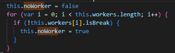 12. 서버로부터 받은 데이터를 for문을 이용해 반복한다. User한명이라도 휴식상태가 아니면 noWorer를 true로 바꾼다.