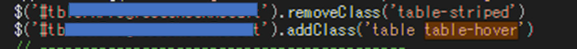 table-striped가 적용되어 있는경우 hover이벤트가 작동되지 않기때문에 remove해준 후 table-hover add해주기!