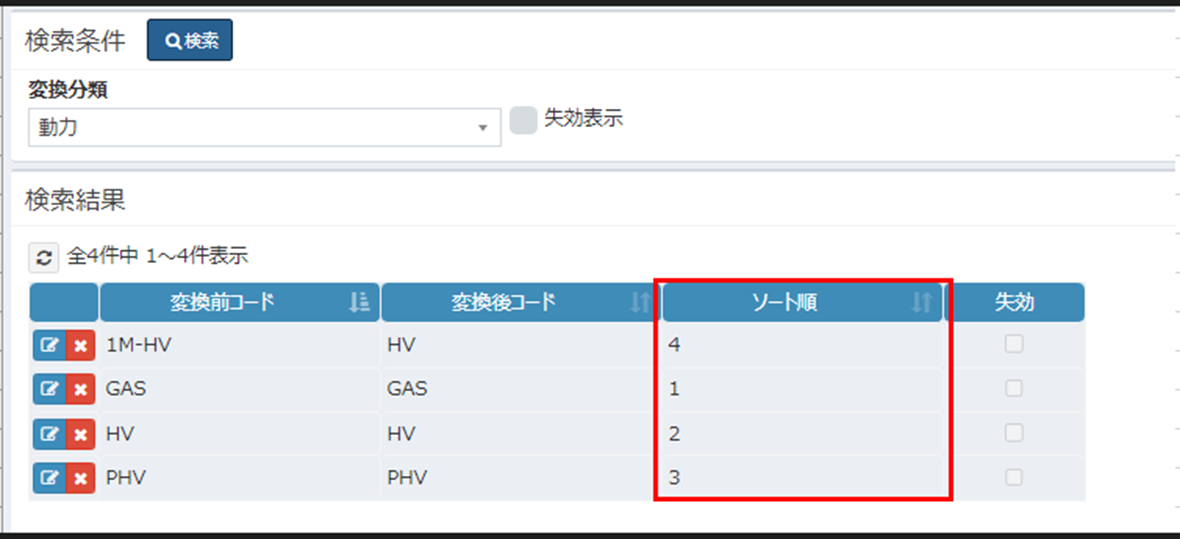 테이블 순서를 ソート順으로 할것