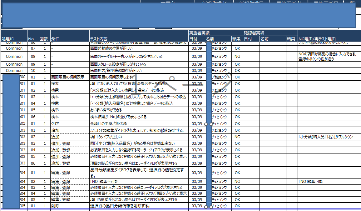 오늘은 단체테스트(単体テスト)를 서류로 작성하는 일을 한다.