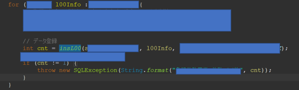 마지막으로 데이터 셋팅이 끝난 데이터 리스트를 루프하여, Insert해준다. 이때 Insert의 executeUpdate가 1이 아니면 예외처리