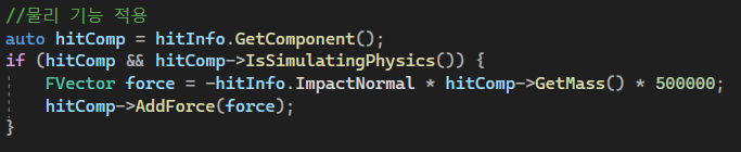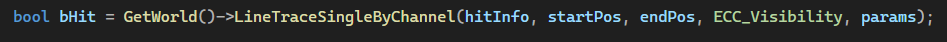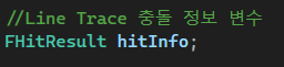 그 다음에는 hitInfo를 만들어서 함수 매개변수로 보내준다. hitInfo는 LineTracing으로 감지를 하였을 때에 감지 된 부분의 위치, 노말, 오브젝트 정보 등등을 저장하는 역할을 해준다.