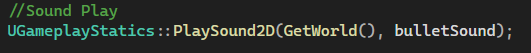 그 후 UGameplayStatics에 내장되어있는 소리 재생 함수에 현재 월드와 소리 에셋만 넣어주게된다면 사운드 또한 재생된다. (사운드 재생 함수는 2D와 3D가 있는데, 두 개의 차이는 위치 지정에 있다고한다.)