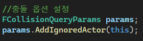 그리고 카메라에서 라인을 그리는 것이기 때문에 내 캐릭터가 맞을 수도 있다. 그렇기에 충돌 옵션 설정을 해주는 FCollisionQueryParam변수를 생성해 설정 후 함수에 보내준다.