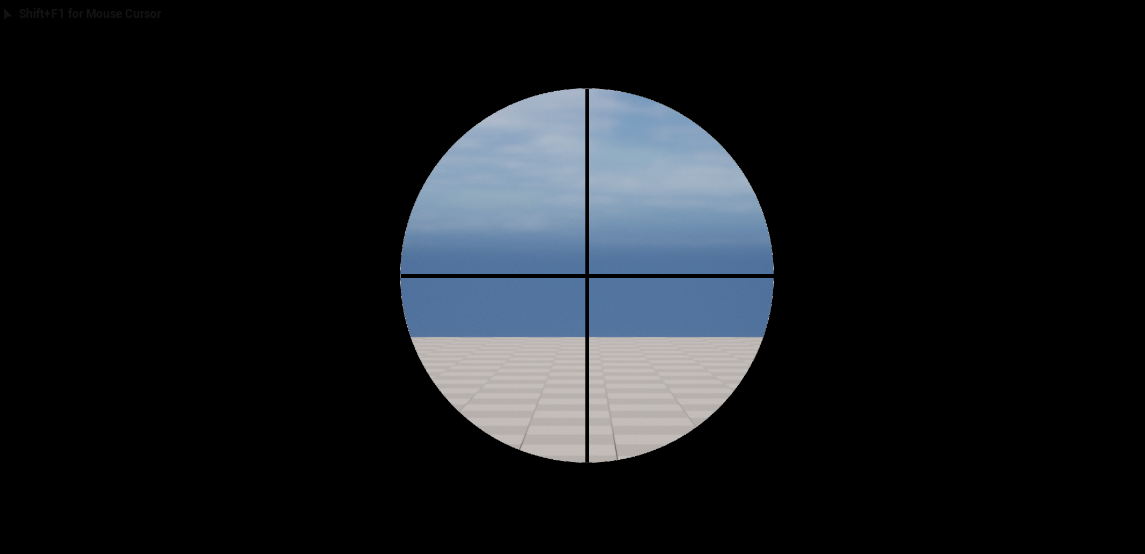 Widget으로 스나이퍼의 줌 효과를 만들었는데, 검정화면에 중간에 구멍이 뚫려있고 십자선이 있는 이미지를 Widget->Canvas Panel에 이미지에 넣어서 우클릭을 할 때 마다 켜지도록 했다.