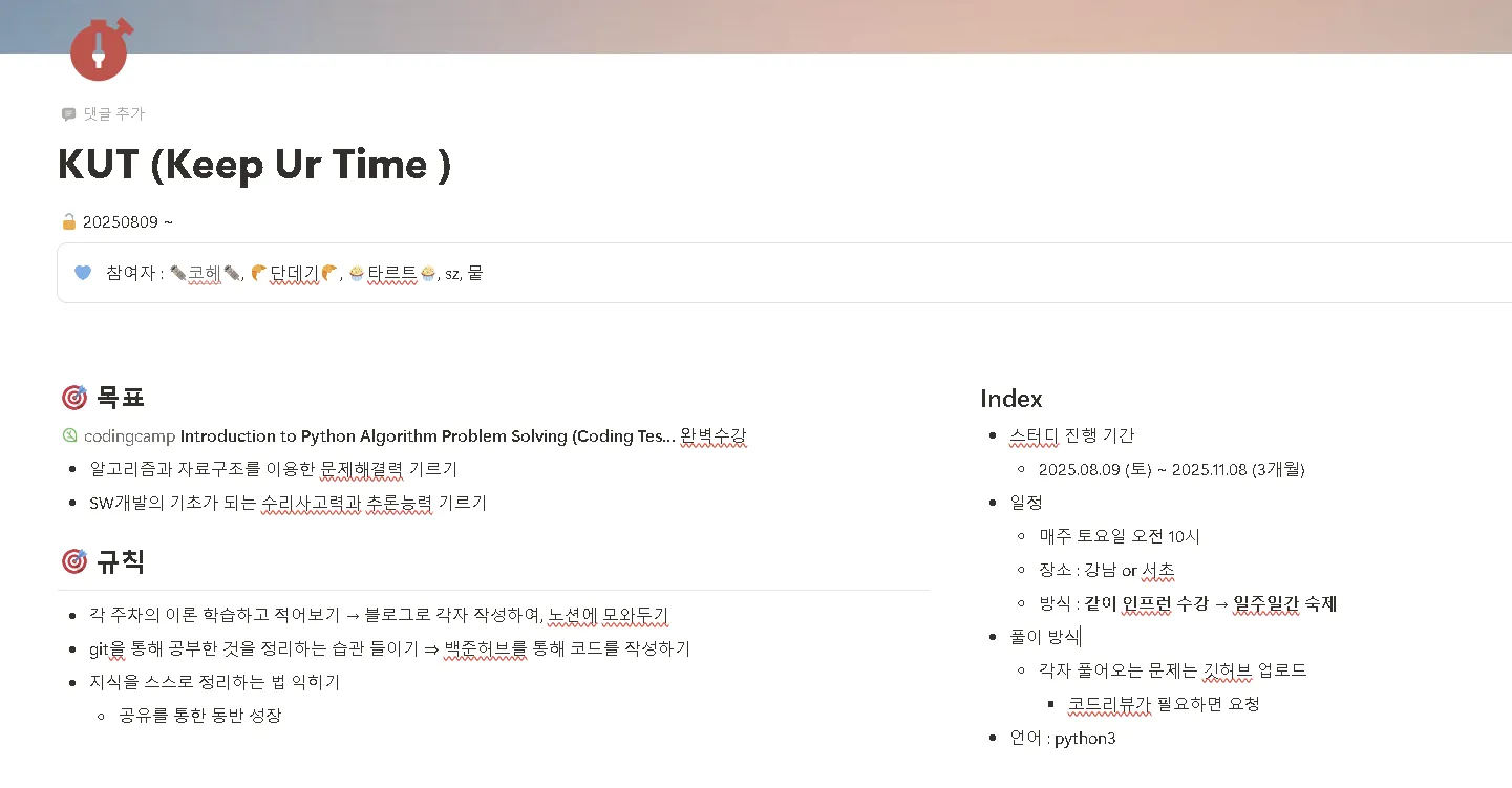 8월에 새로 시작한 KUT 스터디... 이름부터 뭔가 귀엽지 않나? 😅