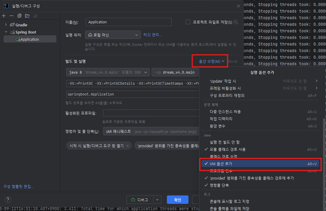 vm 옵션을 추가해서