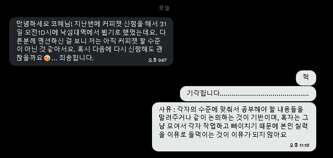 신청자: "커피챗 언제 가능하실까요?"