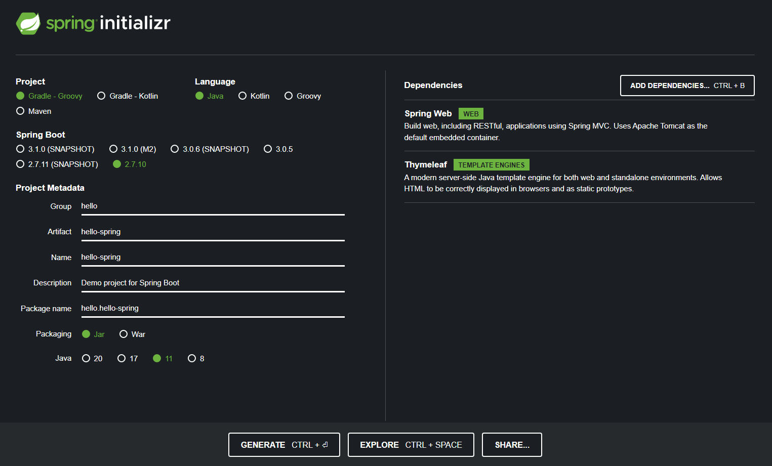 implementation 'org.springframework.boot:spring-boot-starter-thymeleaf'