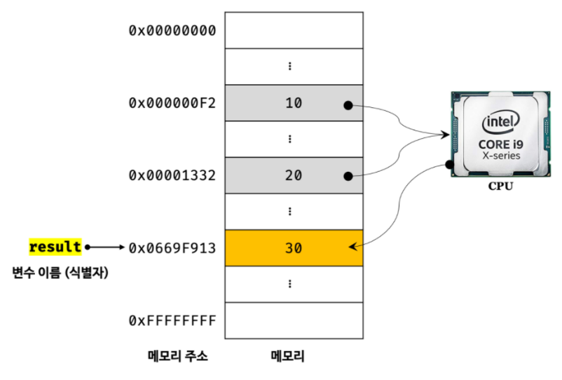 연산값으로 나오게된 30또한 메모리셀 한자리를 차지하게된다.