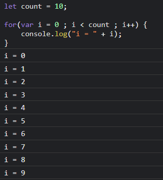 - 변수 선언문이 실행이 종료되면 조건식이 실행되고, 조건식의 값이 ture일경우, 코드블록이 실행된다.
