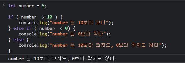 - 만약 조건식이 여러개일 경우, else if문을 사용하여 여러개의 조건식을 구분할 수 있다.