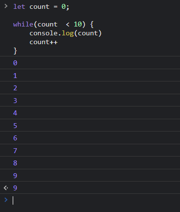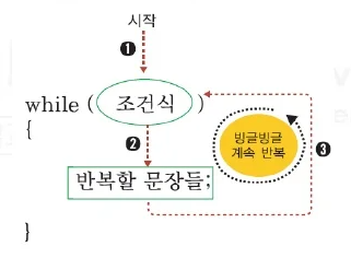 - 조건식의 평가가 참이면 코드블록을 계속해서 반복하고, 조건식이 거짓이 되면 코드블록을 실행하지않고 종료한다.