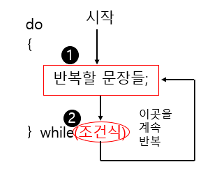 - 즉, 코드블록은 무조건 한번이상 실행된다.