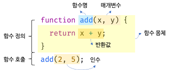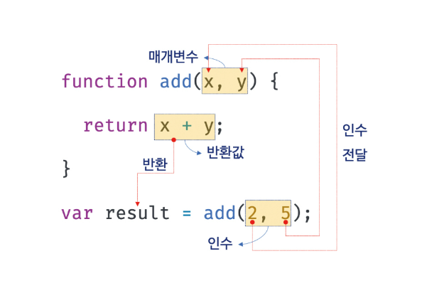 - 매개변수는 함수를 정의할 때 선언하며, 함수 몸체 내부에서 변수와 동일하게 취급된다.