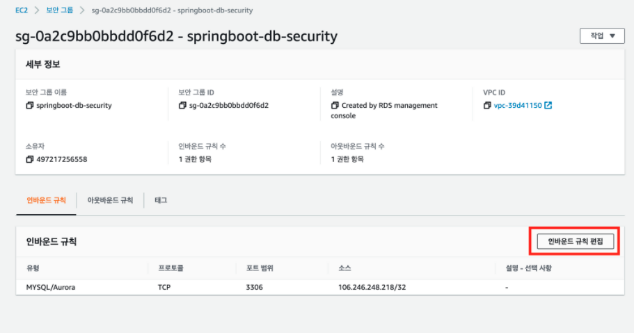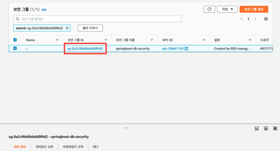 - 보안 그룹 ID 선택