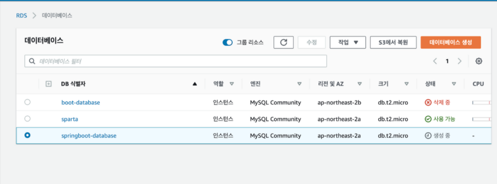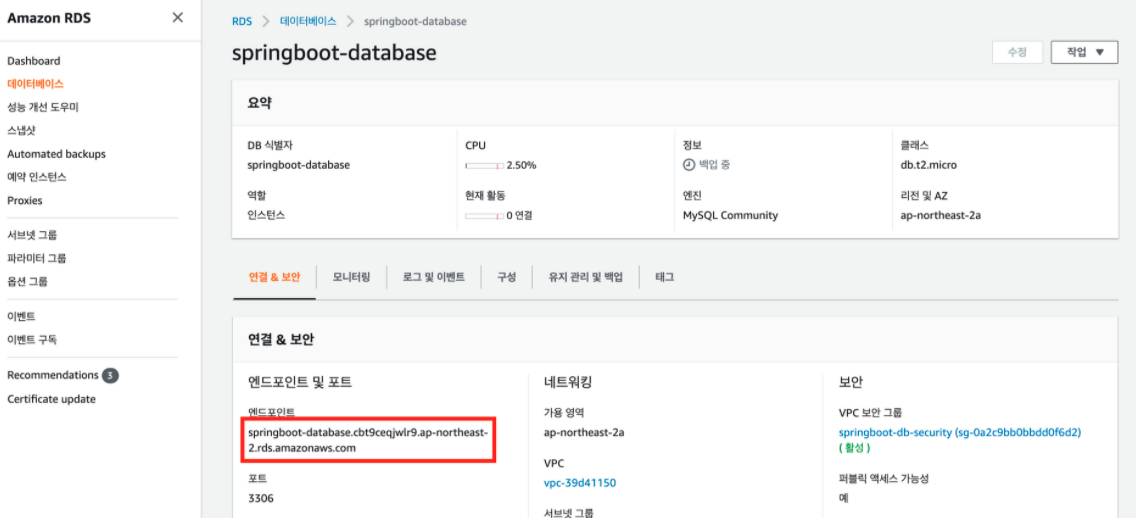 spring.datasource.url=jdbc:mysql://나의엔드포인트:3306/db 인스턴스 식별자