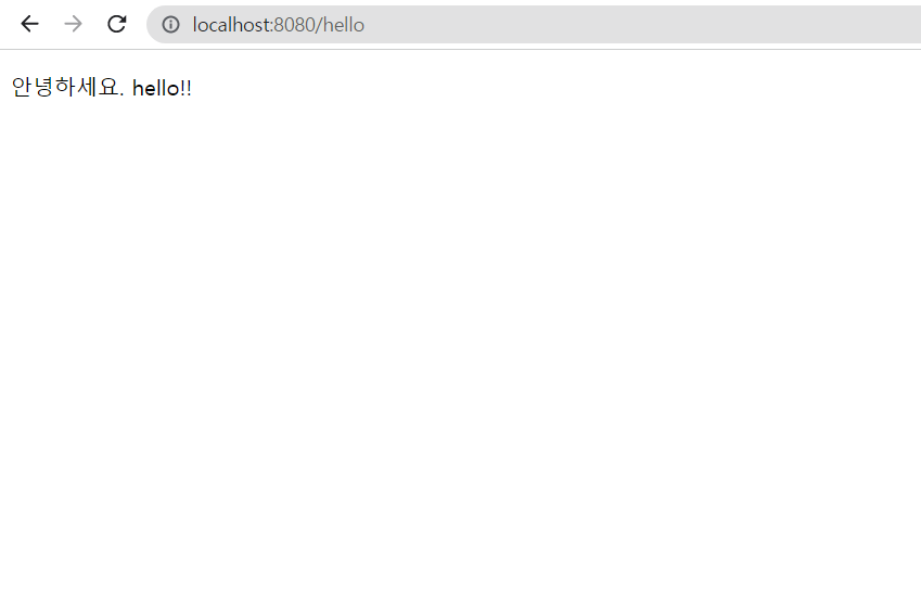 여기서 hello.html에는 p태그안에 hello!! 라는 문자열이 없는데 웹페이지 상에선 hello!!라는 문자열이 떠있는 것을 확인할 수 있다. 이 이유는 HelloController에서 data에 대한 값을 hello!!로 지정해주었기 때문이다.