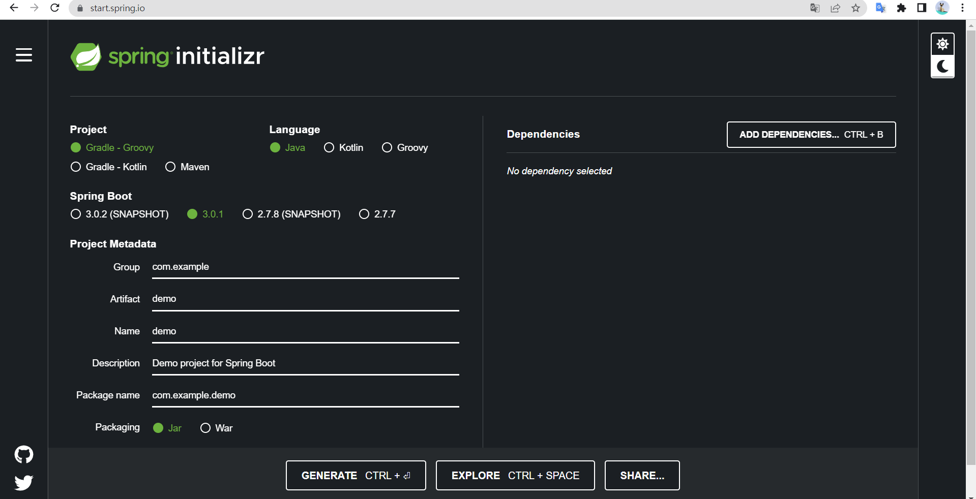 장고 혹은 다른 IDE에서의 프로젝트 생성과는 달리 사이트에서 스프링 부트 프로젝트를 생성할 수 있다는 점이 신기했는데 그 방법을 천천히 알아보자.