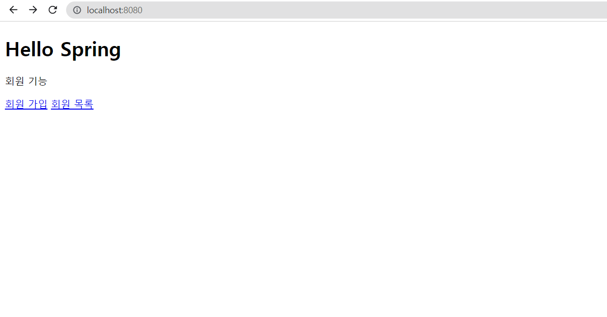 화면을 이와 같이 구성하고 memberController에서 주소와 매핑해주고 접속하면 다음과 같은 화면이 뜰 것이다.