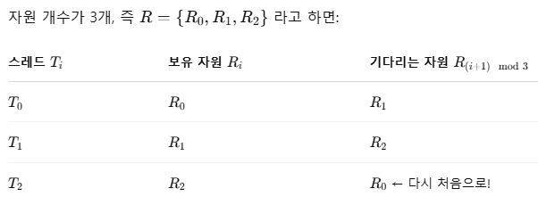 - 스레드 Ti 는 리소스 R(i+1) mod (n+1) 를 기다림