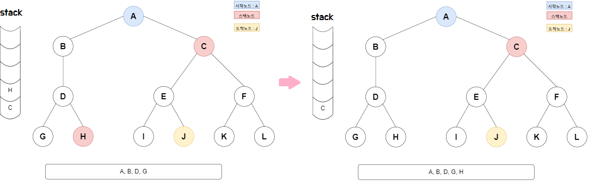 계속해서 Visited를 기록해두어 Stack에 중복으로 삽입되어 이미 방문한 노드는 순회하지 않도록 해야한다.