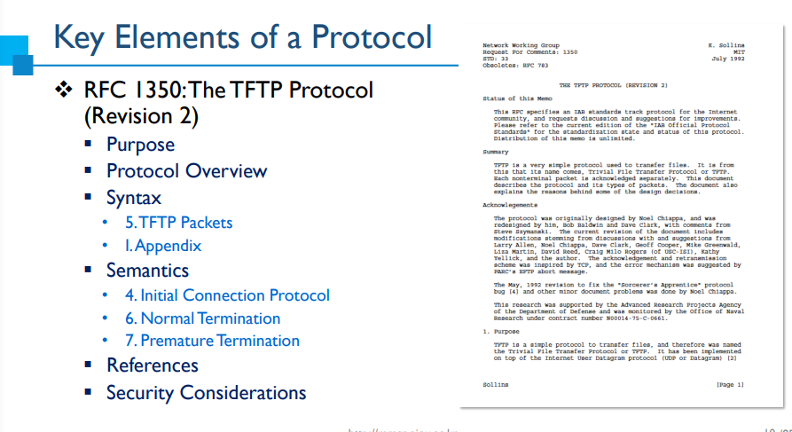 네트워크 개발자들은 좋은 기능들을 넣고, 이것이 왜 있어야하는지 이유를 설명한다. -> 프로토콜을 정당화하는 과정