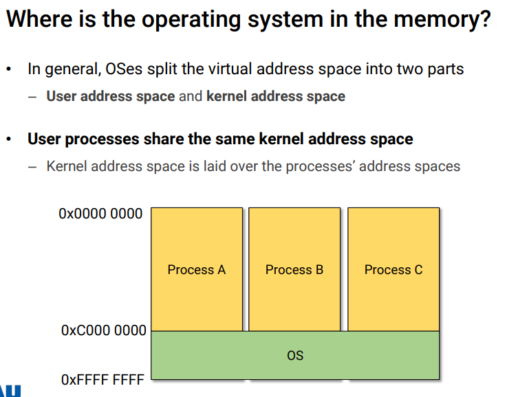 - 유저 프로세스들은 같은 kerner address space를 공유한다.