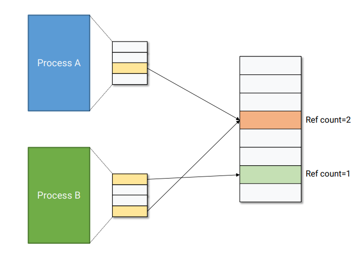 - 한개의 피지컬 페이지를 서로다른 프로세스가 공유해서 사용할 수 있도록 한다.