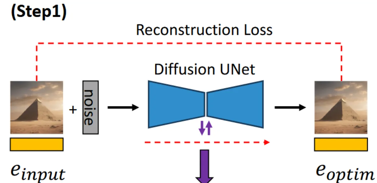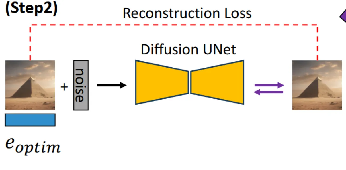 두번째 단계는 방금 생성한 를 이용해서 원본 이미지를 reconstruction을 잘하게 하는 과정입니다. 이때 사용하는 Diffusion UNet에 LoRA layer를 추가해서 파라미터만 학습하도록 합니다.