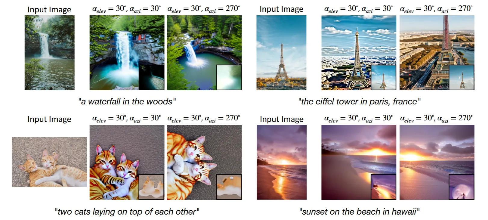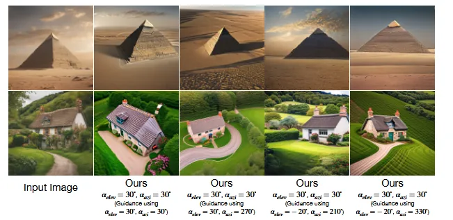 새로운 방위각과 고도의 정보를 입력하면, 해당 시점에서의 새로운 이미지를 생성하는 모델입니다.