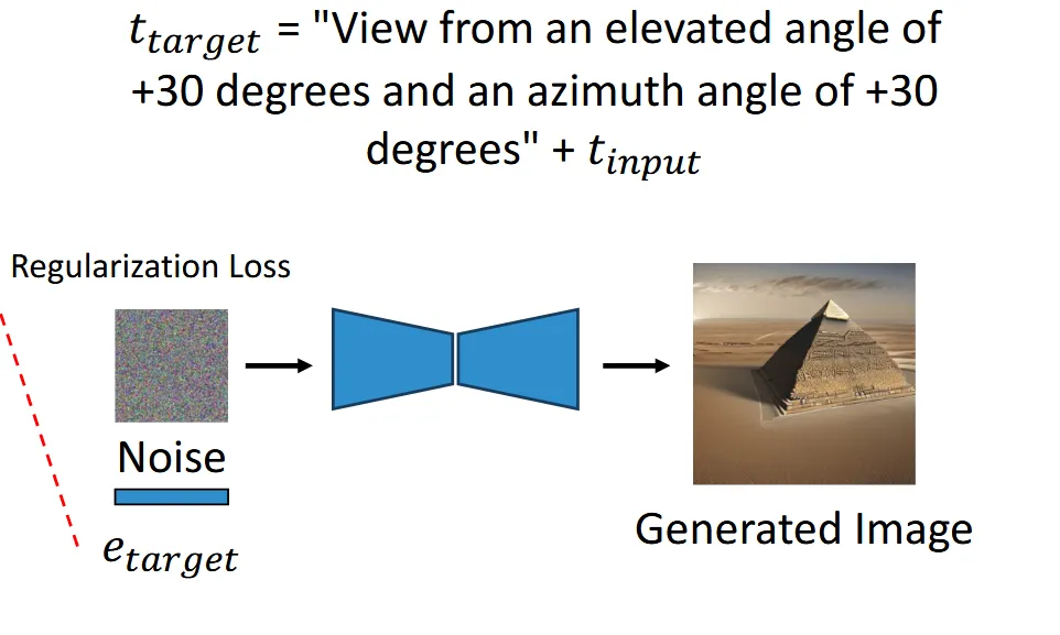 우리가 바꾸고 싶은 시점의 카메라 정보와 text prompt()을 함께 사용해서 을 생성하고, 값과 파인 튜닝된 값의 차이를 L2 Loss를 이용해서 유사하게 만듭니다.