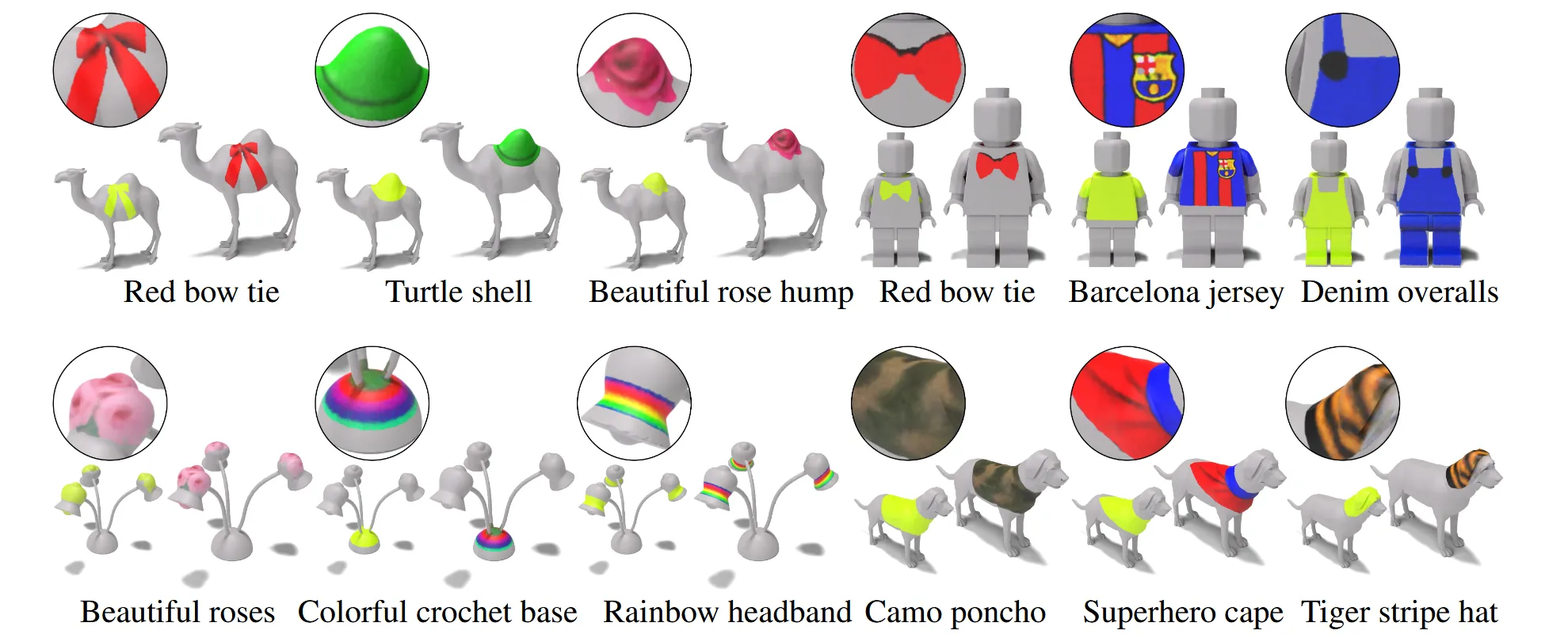 사용자가 Text prompt를 입력하면 3D Mesh의 특정 부분에 원하는 texture를 자동으로 입혀주는 3D Paintbursh를 제안했습니다.