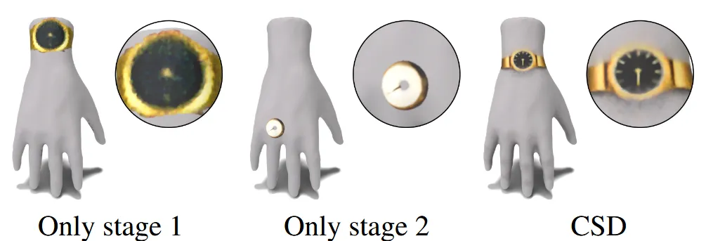 SDS와 비교한 결과인데 디테일한 결과가 확실히 Super-resolution stage를 진행한 CSD가 더 좋은 것을 알 수 있습니다.