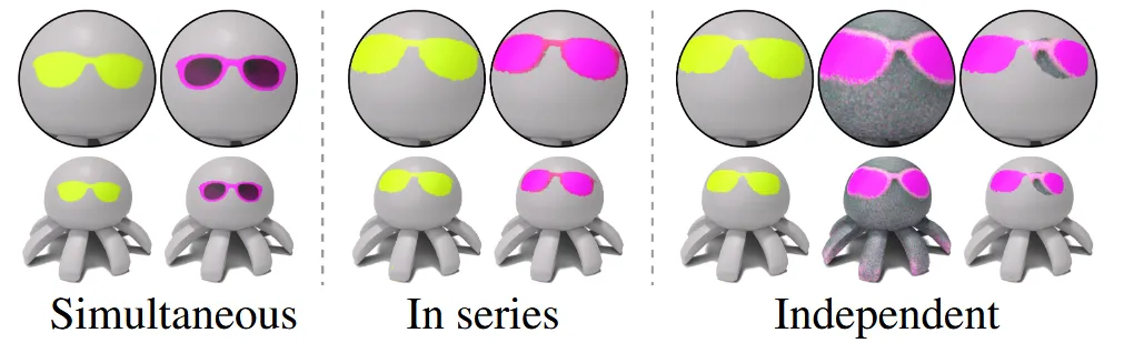 Texture에 대한 loss만 사용한다면 localization map은 우리가 원하는 영역보다 더 큰 결과를 야기할 것입니다. 따라서 localization map에 특정색(노란색)으로 칠해서 얻은 localization-colored mesh ’3D Highlighter’ 논문에서 사용한 동일한 방식으로 생성한 text prompt 와의 비교를 통해서 loss를 계산합니다.