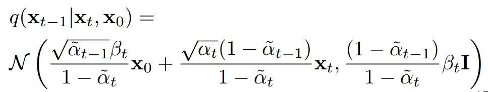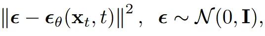 또한 모든 timestep에서의 분포는 Gaussian이기 때문에, 각 시간 단계 𝑡에서의 reverse process 분포 는 복잡한 평균과 분산으로 나타낼 수 있으며, 이 평균과 분산은 고정된 노이즈 스케줄 에 의해 결정됩니다. 이러한 평균을 직접 예측하는 대신, 우리는 평균을 간접적으로 계산할 수 있는 노이즈(𝜀) 를 예측하는 방식을 사용합니다.