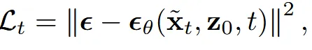 Diffusion 과정을 진행할 때 위의 이 고정된 conidtion으로 들어가면서 을 예측하도록 설계 됐습니다.