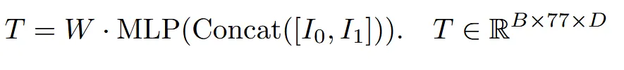 위의 LSTM으로 생성된 2개의 결과는 concat해서 MLP에 들어가게 됩니다. W는 trainable weight로 Cross Attention의 토큰 수 77개를 사용합니다.